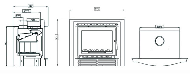 مواد: فولاد کربنی، درب و قاب چدنی، شیشه سرامیکی (با نام تجاری NEG یا Schott)، رنگ مقاوم در برابر درجه حرارت بالا (مارک Forest)